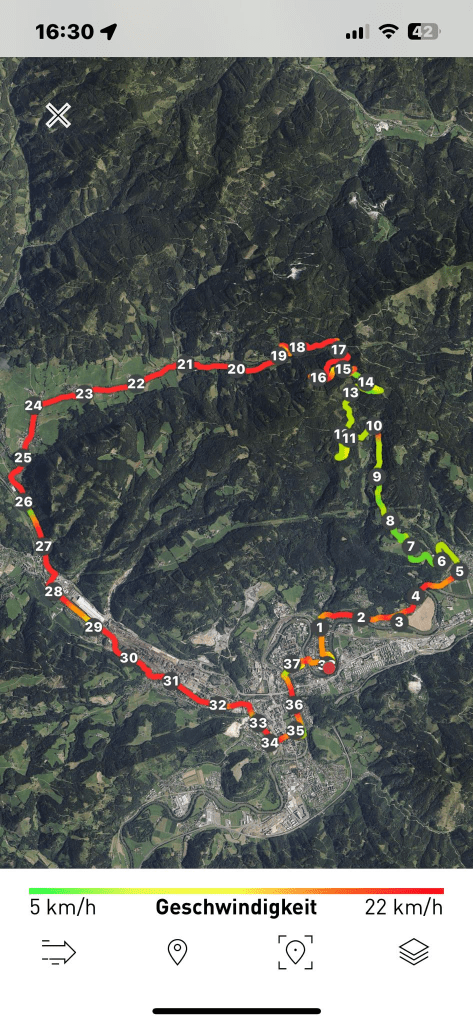 Ich habe mich bewusst für eine stille Radtour mit dem E-Bike entschieden – nach Proleb, auf das Hiembergereck (1345 HM),weiter ins Laintal und nach Leoben (38,14 km)